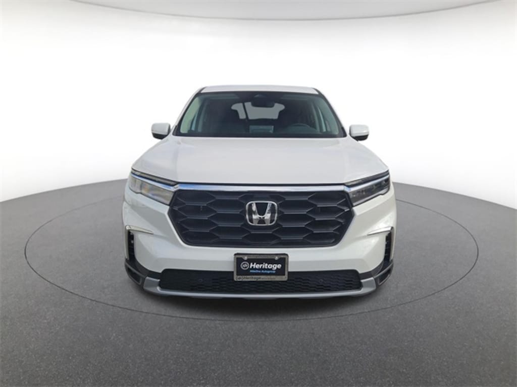 Balance of Factory Warranty, AWD, 3rd row seats: split-bench, 4-Wheel Disc Brakes, 4.167 Axle Ratio, 9 Speakers, ABS brakes, Adaptive Cruise Control: Adaptive Cruise Control (ACC) with Low-Speed Follow, Air Conditioning, Alloy wheels, AM/FM radio: SiriusXM, Apple CarPlay/Android Auto, Auto High-beam Headlights, Auto-dimming Rear-View mirror, Automatic temperature control, Blind Spot Information (BSI) System warning, Brake assist, Bumpers: body-color, Delay-off headlights, Driver door bin, Driver vanity mirror, Dual front impact airbags, Dual front side impact airbags, Electronic Stability Control, Emergency communication system: HondaLink Assist, Exterior Parking Camera Rear, Four wheel independent suspension, Front anti-roll bar, Front Bucket Seats, Front Center Armrest, Front dual zone A/C, Front fog lights, Front reading lights, Fully automatic headlights, Garage door transmitter: HomeLink, Heated door mirrors, Heated Front Bucket Seats, Heated front seats, Illuminated entry, Knee airbag, Lane departure: Lane Keeping Assist System (LKAS) active, Leather Seat Trim, Low tire pressure warning, Memory seat, Occupant sensing airbag, Outside temperature display, Overhead airbag, Overhead console, Panic alarm, Passenger door bin, Passenger vanity mirror, Power door mirrors, Power driver seat, Power Liftgate, Power passenger seat, Power steering, Power windows, Radio data system, Radio: 245-Watt Audio System, Rear air conditioning, Rear anti-roll bar, Rear reading lights, Rear seat center armrest, Rear window defroster, Rear window wiper, Reclining 3rd row seat, Remote keyless entry, Security system, SiriusXM, Speed control, Speed-sensing steering, Speed-Sensitive Wipers, Split folding rear seat, Spoiler, Steering wheel mounted audio controls, Tachometer, Telescoping steering wheel, Tilt steering wheel, Traction control, Trip computer, Turn signal indicator mirrors, Variably intermittent wipers, and Wheels: 18" Pewter Gray Machined Face.