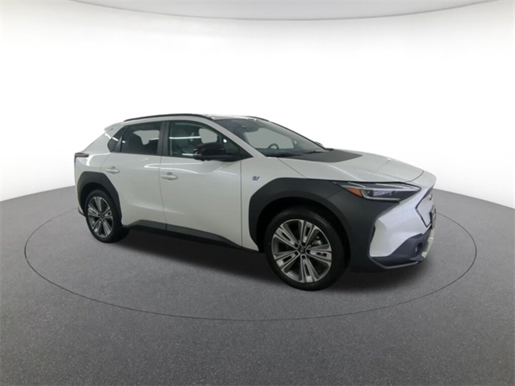 Balance of Factory Warranty Certified, 13.8 Axle Ratio, 4-Wheel Disc Brakes, ABS brakes, Air Conditioning, All-Weather Floor Liners, Alloy wheels, AM/FM radio: SiriusXM, Auto High-beam Headlights, Auto-dimming Rear-View mirror, Automatic temperature control, Brake assist, Bumpers: body-color, Cargo Cover, Cargo Net, Driver door bin, Driver vanity mirror, Dual front impact airbags, Dual front side impact airbags, Electronic Stability Control, Emergency communication system: Subaru Solterra Connect - Safety Connect (1 year trial included), Four wheel independent suspension, Front anti-roll bar, Front Bucket Seats, Front Center Armrest, Front dual zone A/C, Front reading lights, Fully automatic headlights, Heated door mirrors, Heated Front Bucket Seats, Heated front seats, Illuminated entry, Knee airbag, Leather steering wheel, Low tire pressure warning, Occupant sensing airbag, Outside temperature display, Overhead airbag, Overhead console, Panic alarm, Passenger door bin, Passenger vanity mirror, Power door mirrors, Power steering, Power windows, Radio data system, Rear anti-roll bar, Rear reading lights, Rear seat center armrest, Rear window defroster, Remote keyless entry, Security system, Speed control, Speed-sensing steering, Split folding rear seat, Spoiler, Steering wheel mounted audio controls, Telescoping steering wheel, Tilt steering wheel, Traction control, Trip computer, and Variably intermittent wipers.
